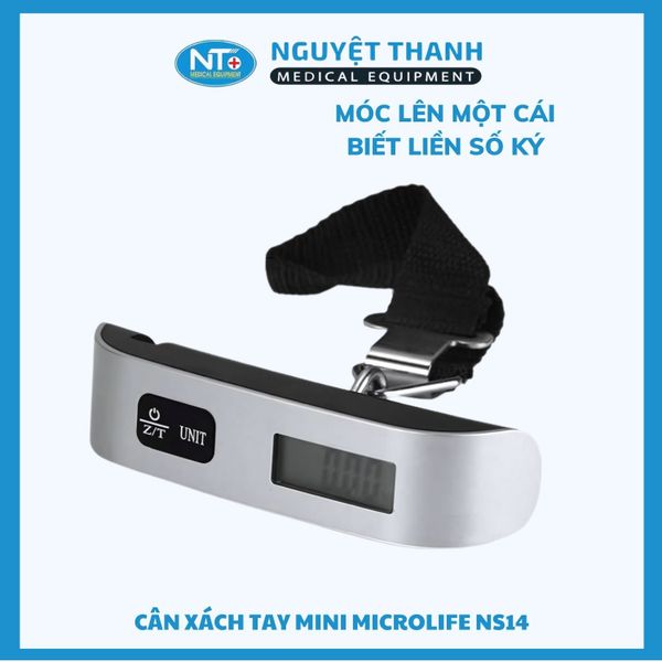 Cân xách tay mini Microlife NS14 là giải pháp hoàn hảo cho mọi nhu cầu cân trọng lượng nhanh chóng và chính xác. Với thiết kế nhỏ gọn, dễ dàng bỏ túi, sản phẩm sử dụng công nghệ Thụy Sĩ tiên tiến, không chỉ giúp bạn kiểm tra hành lý du lịch, mà còn hữu ích khi đi chợ hay mua sắm. Cân có khả năng cân tối đa $50\text{kg}$ và hiển thị cả nhiệt độ phòng. Sản phẩm này hiện đang được Thiết Bị Y Tế Nguyệt Thanh Cần Thơ phân phối trên toàn quốc.