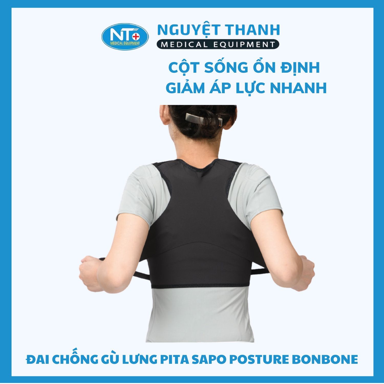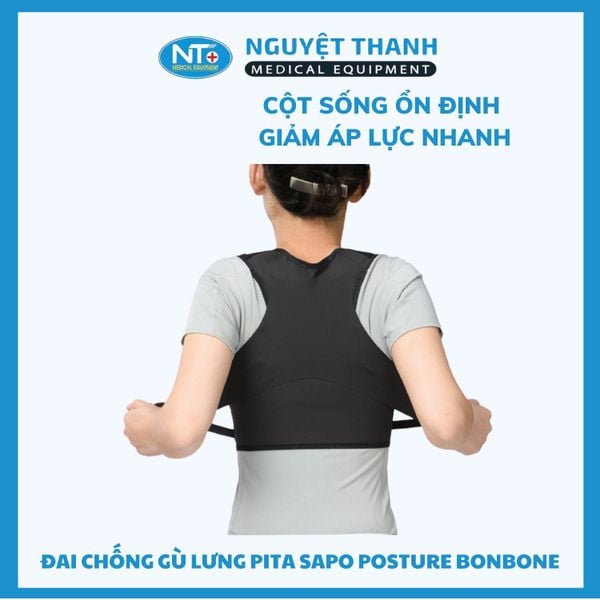 Đai Chống Gù Lưng Pita Sapo Posture Bonbone là giải pháp hỗ trợ cột sống đến từ Nhật Bản, giúp cố định vai và lưng, điều chỉnh tư thế lưng thẳng, tránh tình trạng gù lưng, cong vẹo cột sống do thói quen sinh hoạt và làm việc sai cách. Sản phẩm sử dụng chất liệu thoáng khí, siêu nhẹ, tạo cảm giác thoải mái khi đeo, phù hợp cho cả người lớn và trẻ em. Sản phẩm này hiện đang được Thiết Bị Y Tế Nguyệt Thanh Cần Thơ phân phối trên toàn quốc.