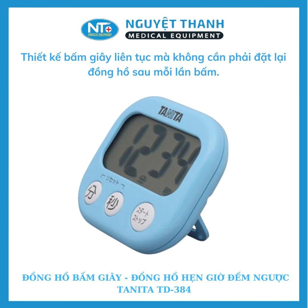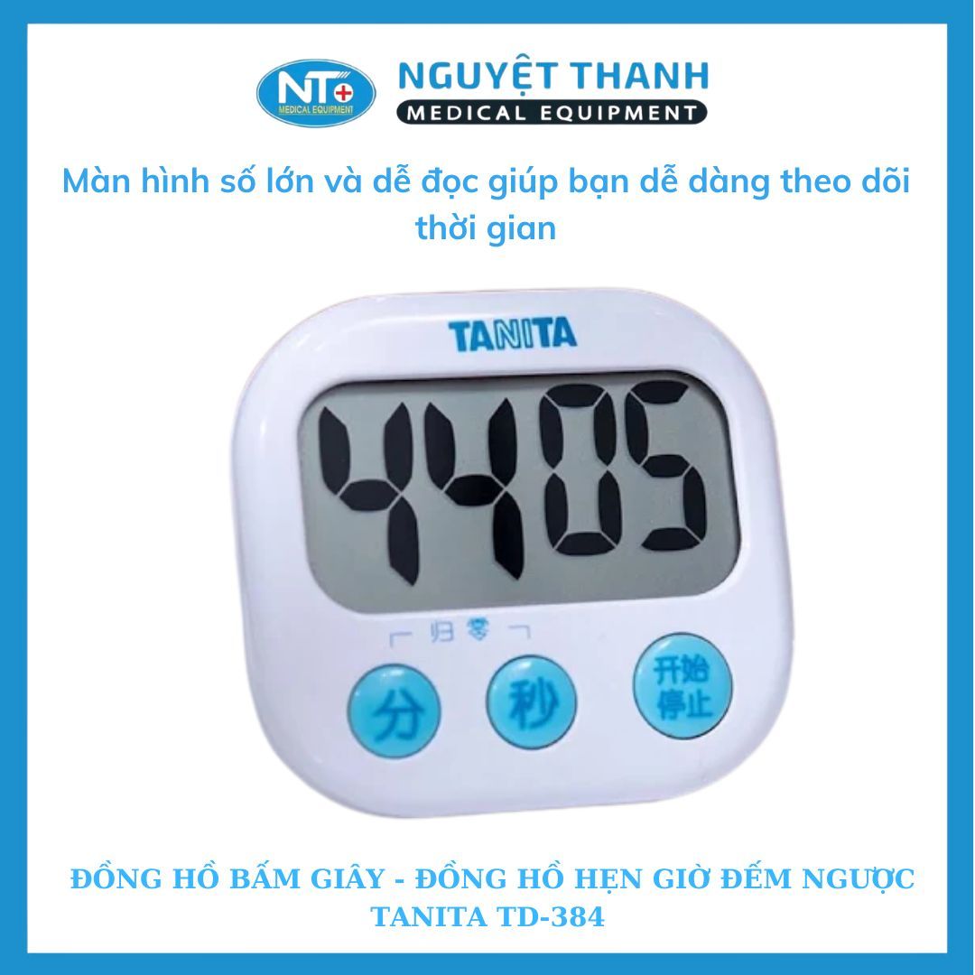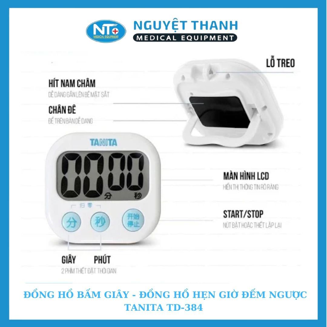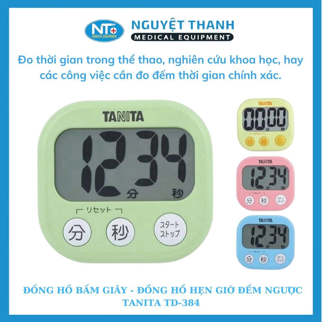 Đồng hồ đếm ngược thời gian Tanita TD-384 là một thiết bị nhỏ gọn, tiện lợi giúp bạn theo dõi thời gian chính xác trong nhiều hoạt động như nấu ăn, tập luyện, học tập, hay chăm sóc sức khỏe. Với màn hình lớn, thiết kế thông minh tích hợp nam châm và nhiều màu sắc tươi sáng, TD-384 không chỉ là một công cụ đếm giờ mà còn là một phụ kiện thời trang. Sản phẩm này hiện đang được Thiết Bị Y Tế Nguyệt Thanh Cần Thơ phân phối trên toàn quốc.