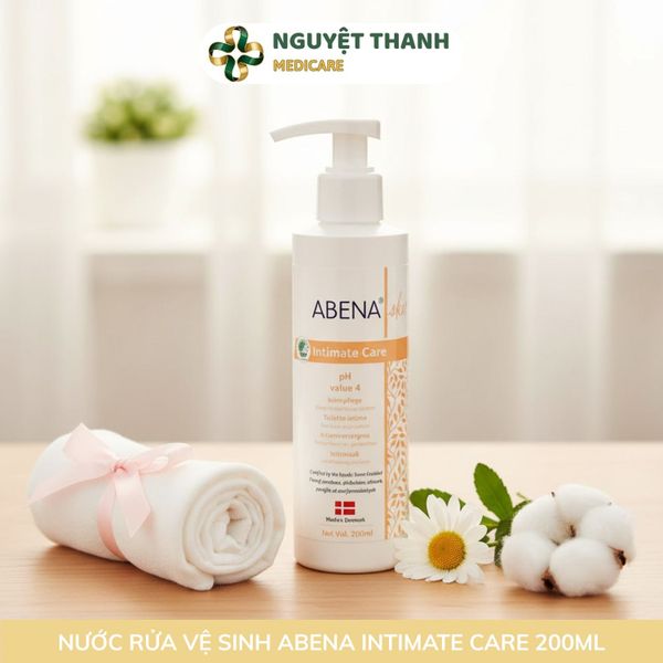 Dung Dịch Vệ Sinh Phụ Nữ Abena Intimate Care 200ml là sản phẩm chăm sóc vùng kín cao cấp từ Đan Mạch, được thiết lập ở pH 4.0 chuẩn sinh lý. Công thức 3 KHÔNG (không màu, không mùi, không paraben) cùng với Lactic Acid giúp cân bằng môi trường tự nhiên, làm sạch nhẹ nhàng, khử mùi và ngăn ngừa sự phát triển của vi khuẩn có hại, mang lại cảm giác thoáng sạch, dễ chịu suốt cả ngày. Sản phẩm này hiện đang được Thiết Bị Y Tế Nguyệt Thanh Cần Thơ phân phối trên toàn quốc.