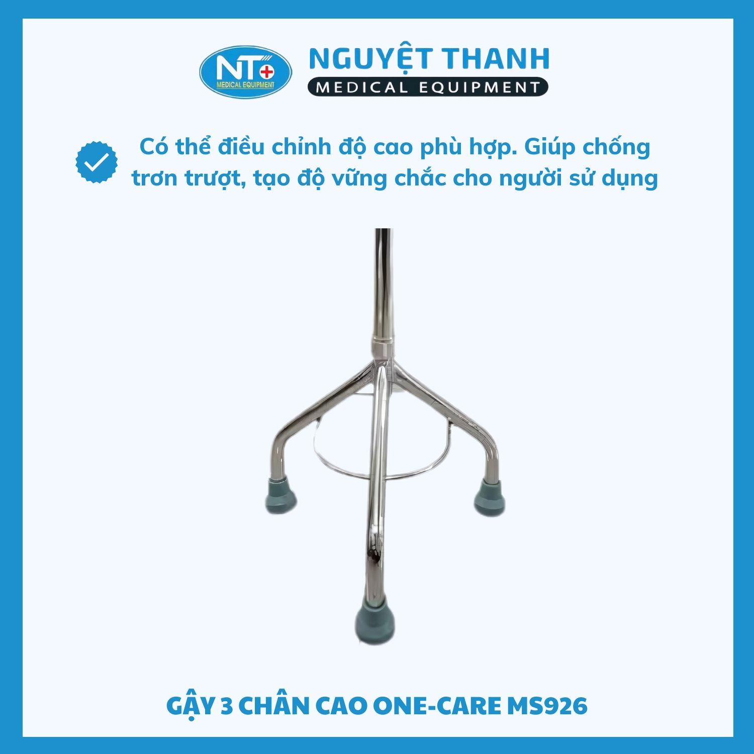 🔸Thiết Bị Y Tế Nguyệt Thanh Cần Thơ là nhà phân phối chính hãng GẬY 3 CHÂN CAO ONE-CARE MS926 trên toàn quốc. Chúng tôi cam kết mang đến sản phẩm chất lượng, dịch vụ tận tâm và giao hàng nhanh chóng đến tận tay khách hàng.
