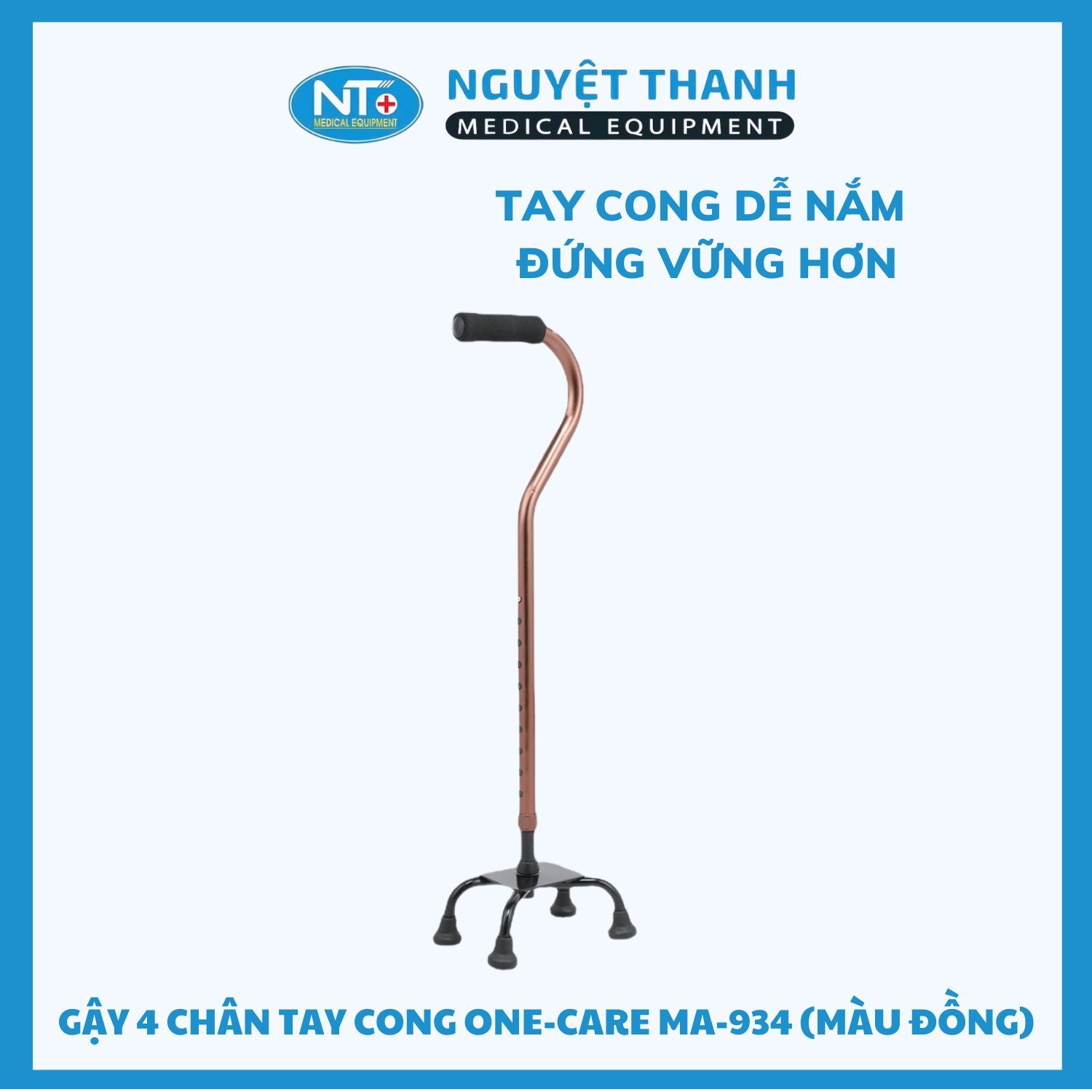GẬY 4 CHÂN TAY CONG ONE-CARE MA-934 (MÀU ĐỒNG) – HỖ TRỢ ĐI LẠI VỮNG CHẮC VÀ AN TOÀN