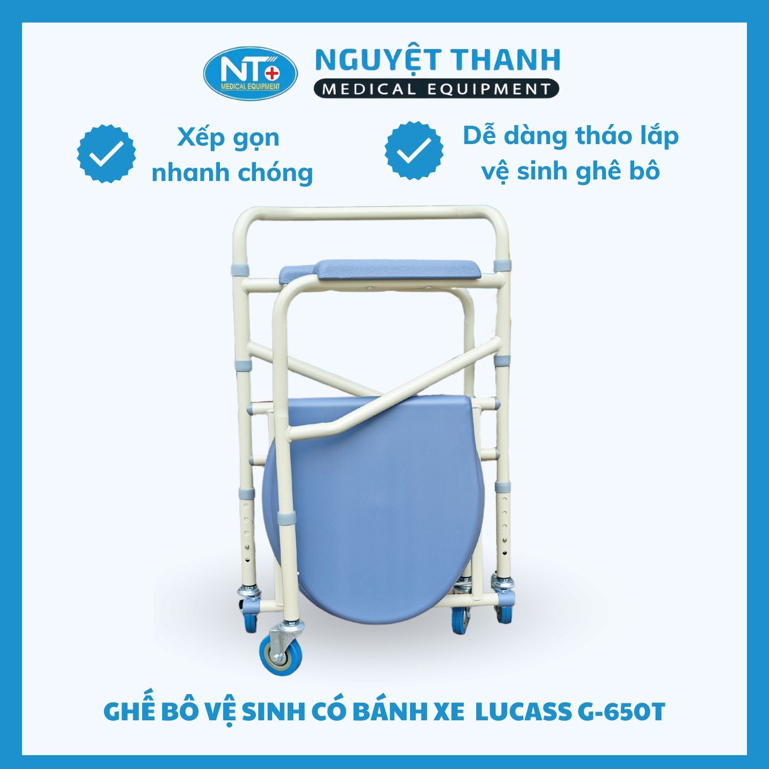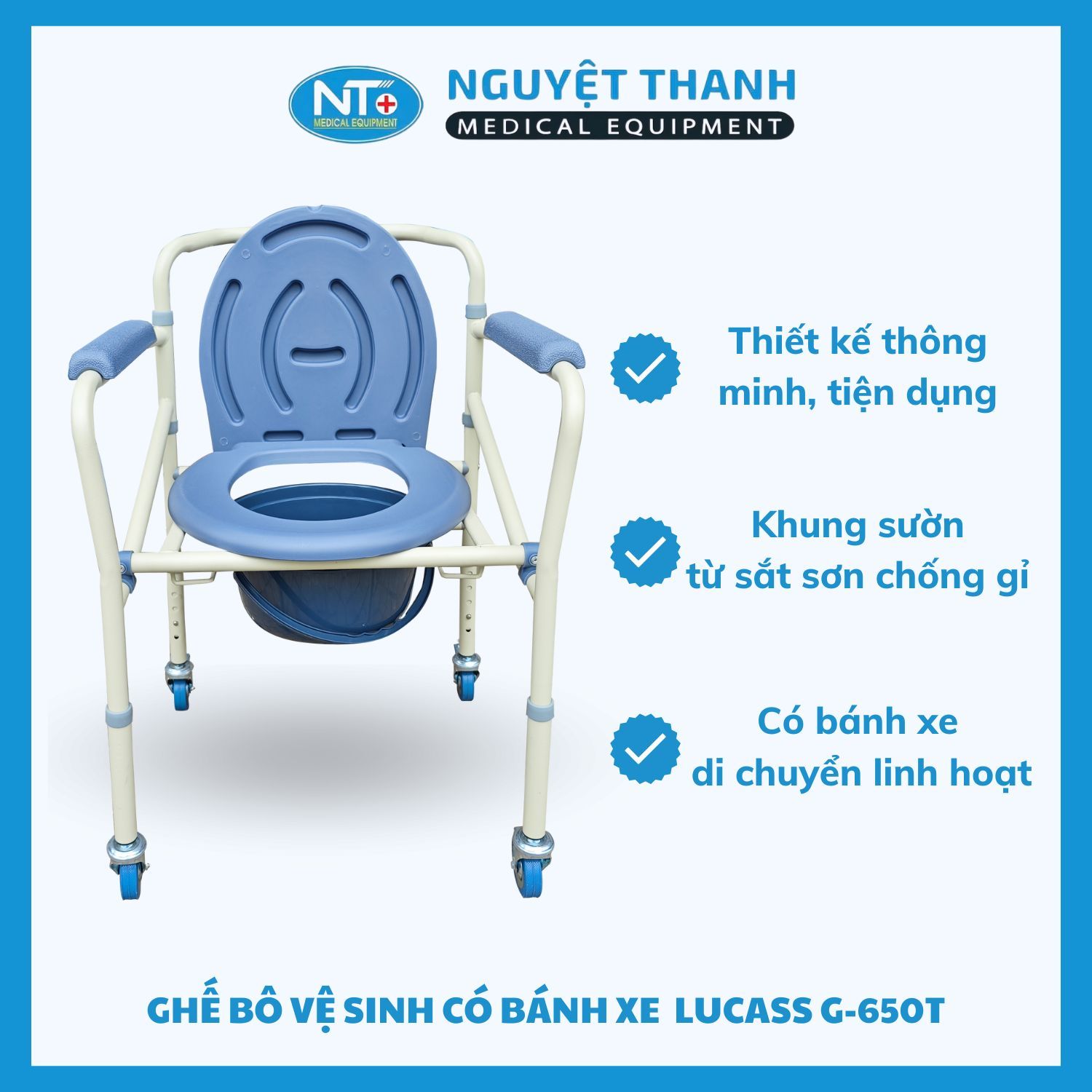 Ghế bô sắt sơn Lucass G-650T là một sản phẩm cao cấp, được thiết kế chuyên biệt nhằm cung cấp giải pháp hỗ trợ vệ sinh hiệu quả và an toàn cho người cao tuổi, người bệnh cần phục hồi chức năng, hoặc người khuyết tật gặp khó khăn trong việc di chuyển đến nhà vệ sinh. Với khung sắt sơn chống rỉ bền bỉ và bốn bánh xe linh hoạt, sản phẩm mang lại sự tiện lợi tối đa cho cả người dùng và người chăm sóc. Sản phẩm này hiện đang được Thiết Bị Y Tế Nguyệt Thanh Cần Thơ phân phối trên toàn quốc.