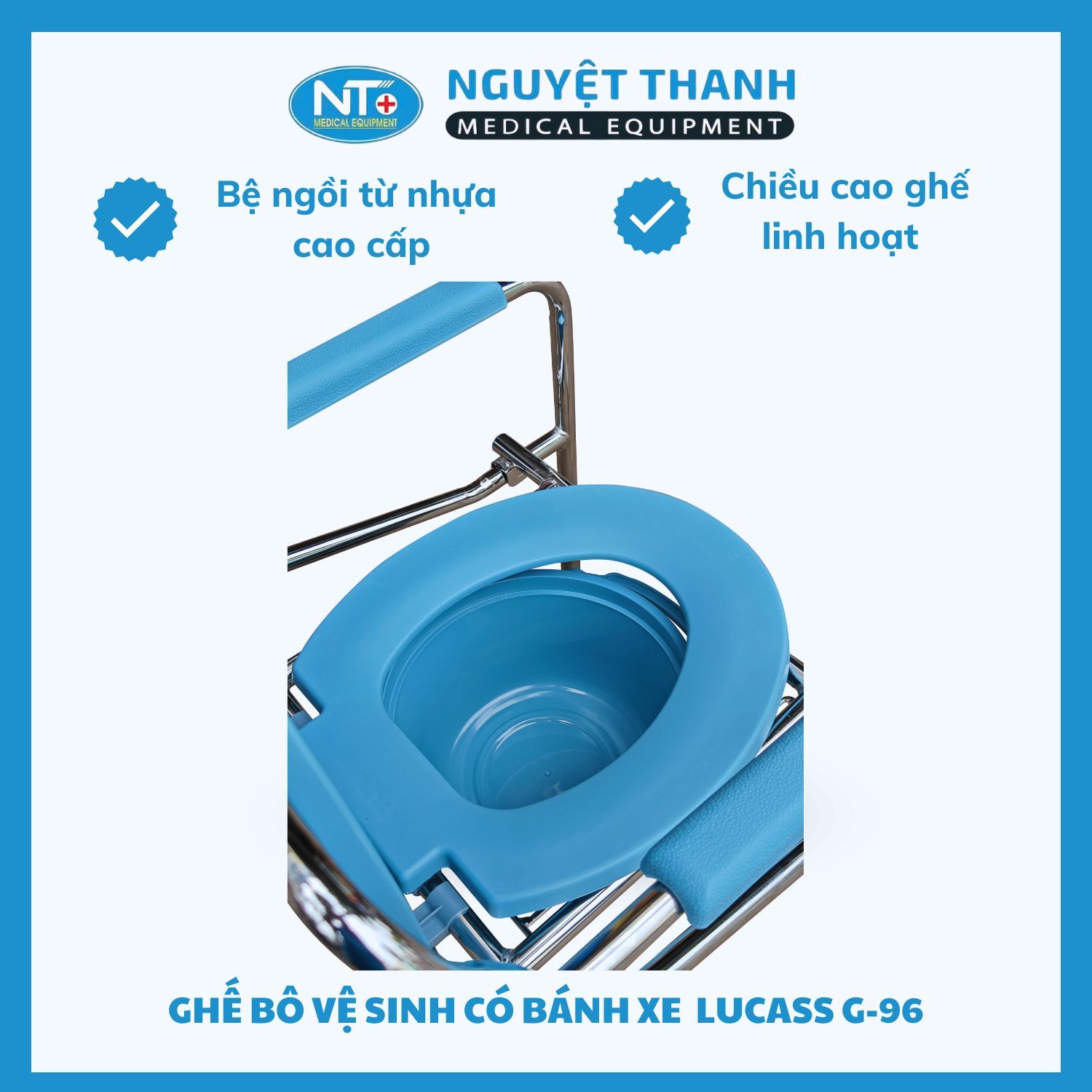GHẾ BÔ VỆ SINH CÓ BÁNH XE, NẮP ĐẬY LUCASS G-696 (G-96) – HỖ TRỢ CHĂM SÓC NGƯỜI BỆNH TOÀN DIỆN