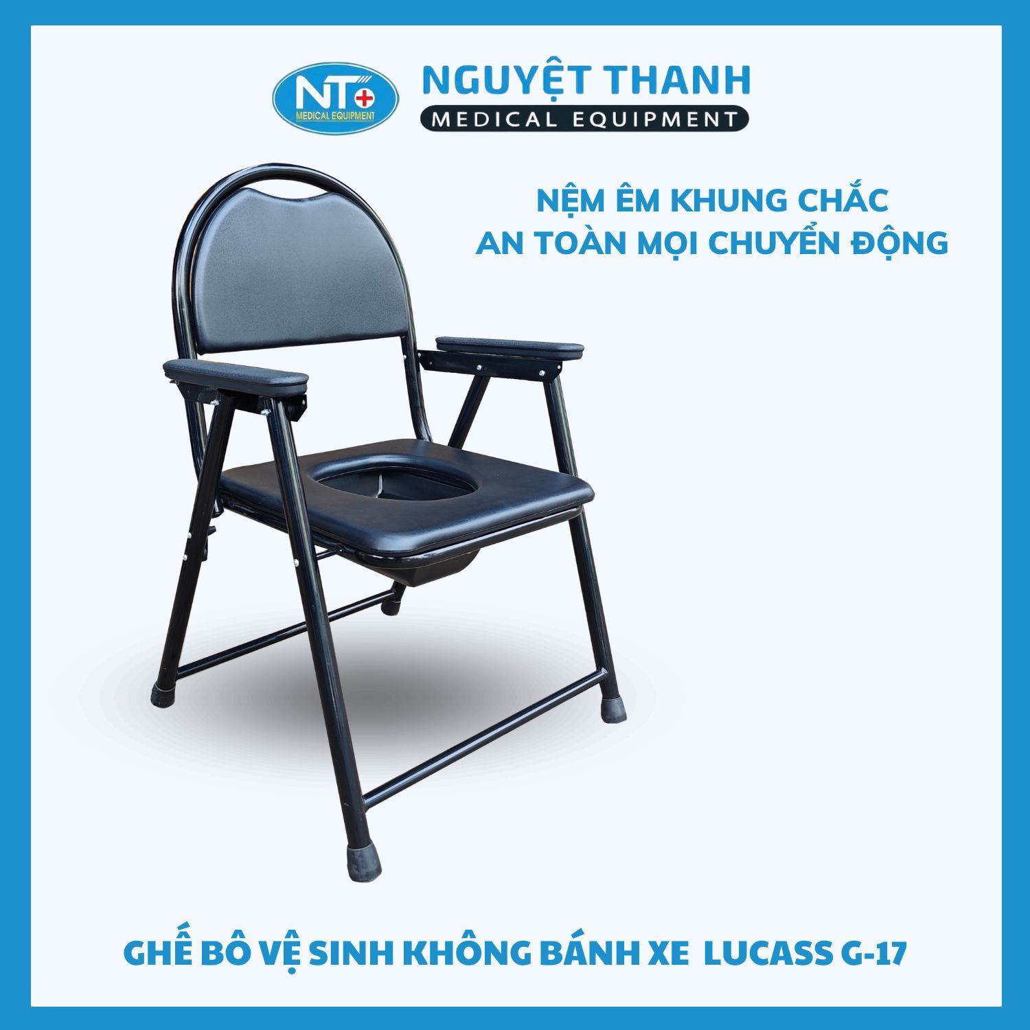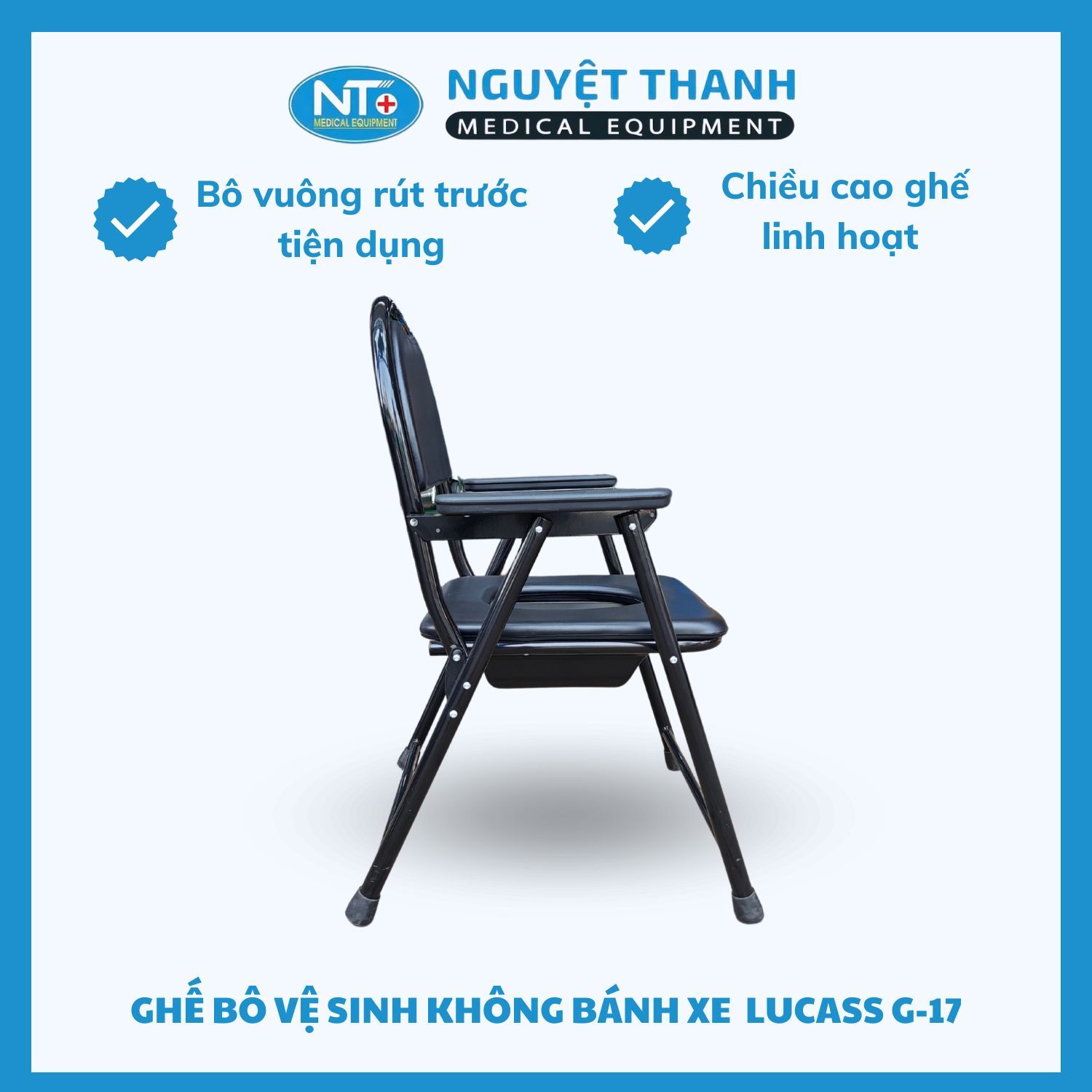Ghế Bô Vuông, Không Bánh Xe, Mặt Nệm Lucass G-17 là sản phẩm hỗ trợ vệ sinh cá nhân đa năng, được thiết kế đặc biệt cho người già, người bệnh, người khuyết tật hoặc những người gặp khó khăn trong việc đi lại và sử dụng nhà vệ sinh thông thường. Với khung thép chắc chắn, thiết kế thông minh và mặt nệm êm ái, sản phẩm mang lại sự thoải mái, an toàn và tiện nghi tối đa cho người sử dụng, đồng thời giảm bớt gánh nặng cho người chăm sóc. Sản phẩm này hiện đang được Thiết Bị Y Tế Nguyệt Thanh Cần Thơ phân phối trên toàn quốc.