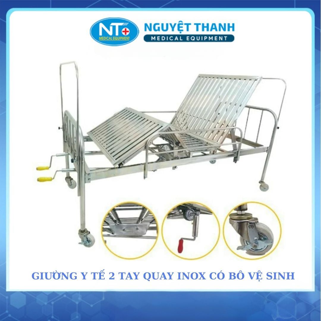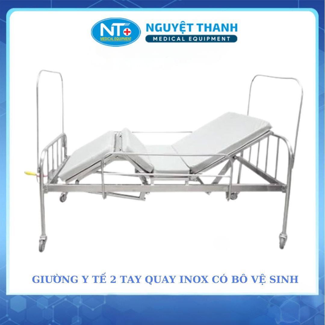 Giường Inox 2 Tay Quay, Có Bô, Thanh Chắn là một thiết bị y tế thiết yếu, được thiết kế để tối ưu hóa việc chăm sóc bệnh nhân, người cao tuổi hoặc người khó khăn trong vận động tại nhà và cơ sở y tế. Sản phẩm nổi bật với khung Inox sáng bóng, độ bền cao, tích hợp hai tay quay điều chỉnh linh hoạt phần đầu và tính năng đi vệ sinh tại giường. Thanh chắn hai bên mang lại sự an toàn tuyệt đối. Thiết kế này giúp giảm công sức cho người chăm sóc, đồng thời cung cấp môi trường nghỉ ngơi thoải mái và vệ sinh cho người bệnh. Sản phẩm này hiện đang được Thiết Bị Y Tế Nguyệt Thanh Cần Thơ phân phối trên toàn quốc.