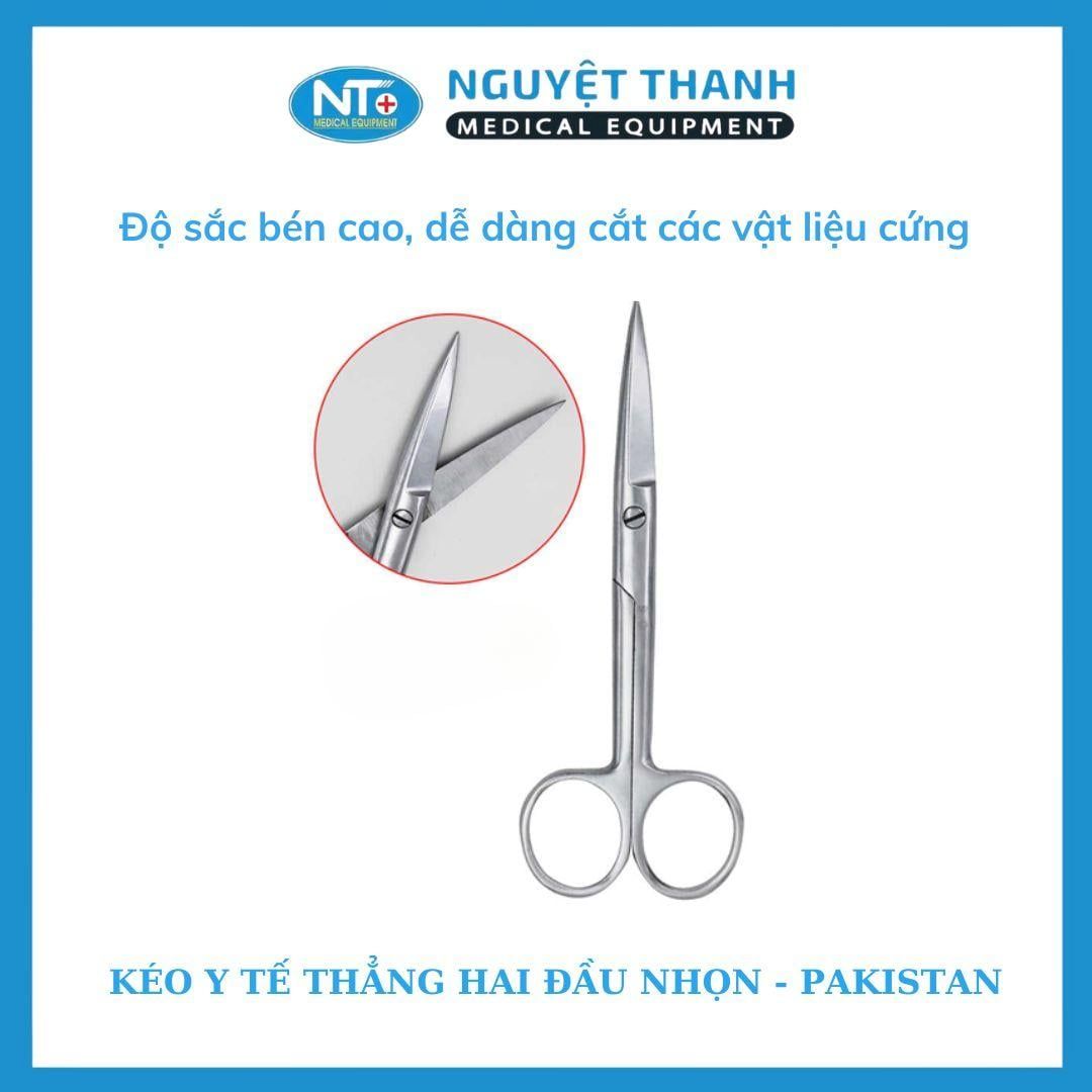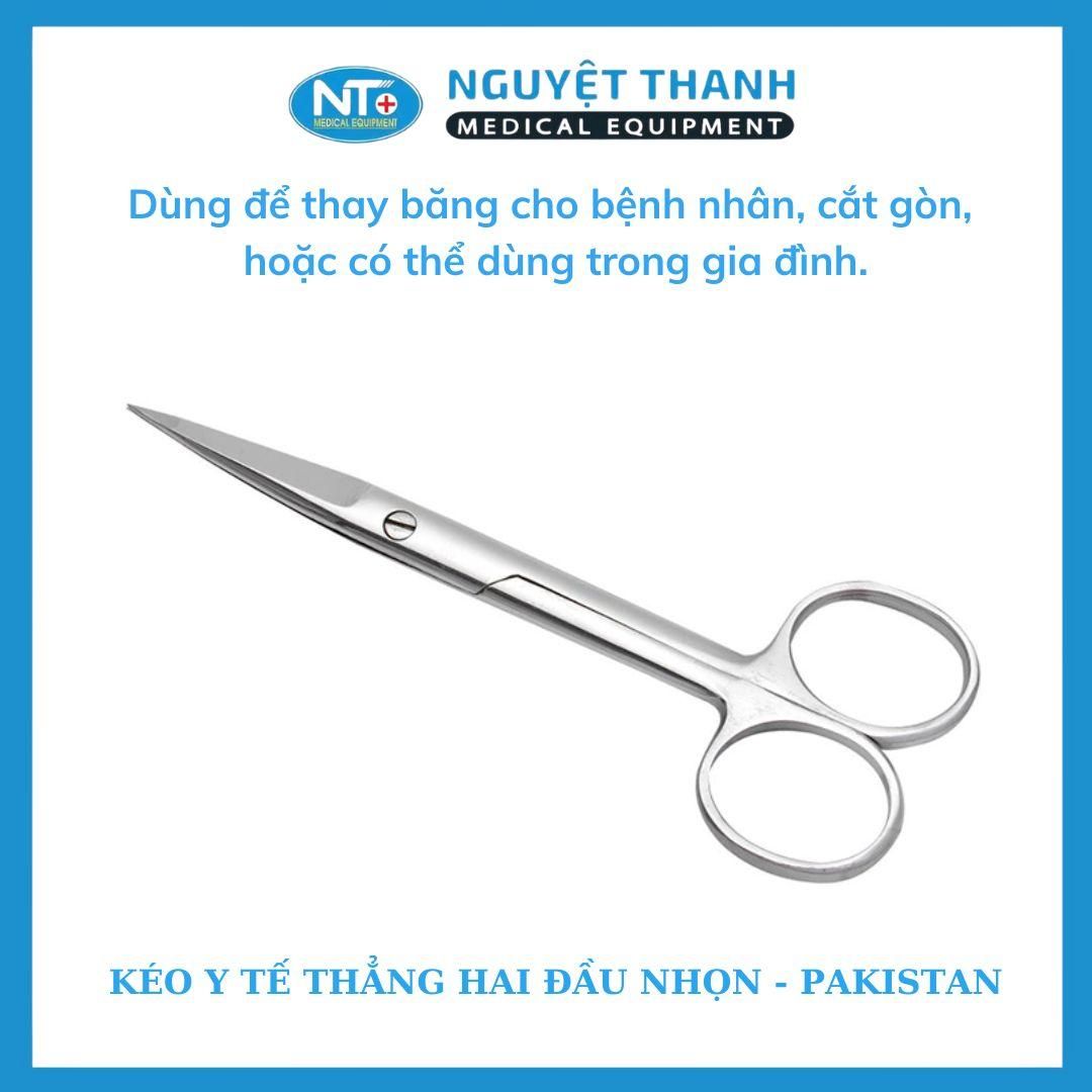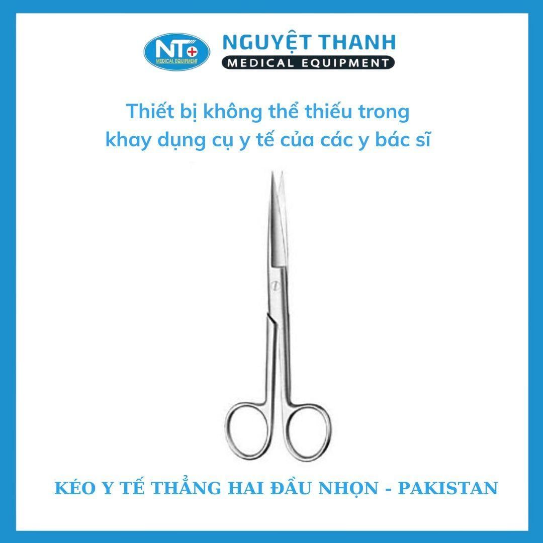 Kéo y tế thẳng 2 đầu nhọn Pakistan là dụng cụ không thể thiếu trong các cơ sở y tế, phòng phẫu thuật và tủ thuốc gia đình. Được chế tác từ thép không gỉ cao cấp, sản phẩm đáp ứng các tiêu chuẩn khắt khe về độ chính xác và khả năng tiệt trùng trong môi trường y khoa chuyên nghiệp. Sản phẩm này hiện đang được Thiết Bị Y Tế Nguyệt Thanh Cần Thơ phân phối trên toàn quốc.