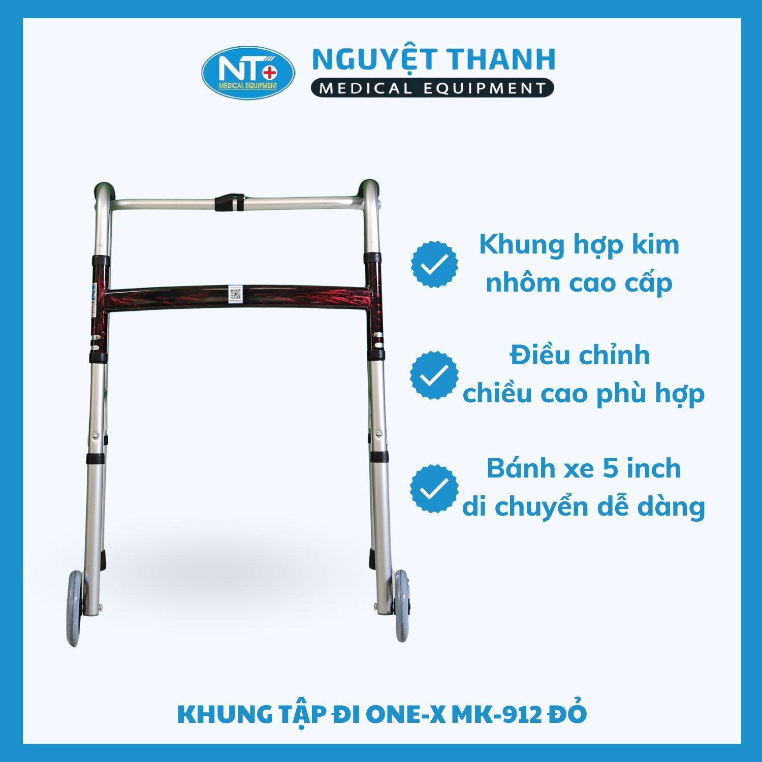 Khung tập đi One-X MK-912 là một thiết bị hỗ trợ di chuyển lý tưởng cho người già, bệnh nhân đang trong quá trình phục hồi chức năng vận động chi dưới, hoặc người gặp khó khăn trong việc đi lại. Với khung hợp kim nhôm siêu nhẹ nhưng chắc chắn, cùng thiết kế có bánh xe tiện lợi và khả năng gấp gọn nhanh chóng, sản phẩm giúp người dùng di chuyển một cách an toàn, linh hoạt và thuận tiện. Khung còn có thể điều chỉnh độ cao linh hoạt để phù hợp với nhiều đối tượng. Sản phẩm này hiện đang được Thiết Bị Y Tế Nguyệt Thanh Cần Thơ phân phối trên toàn quốc.