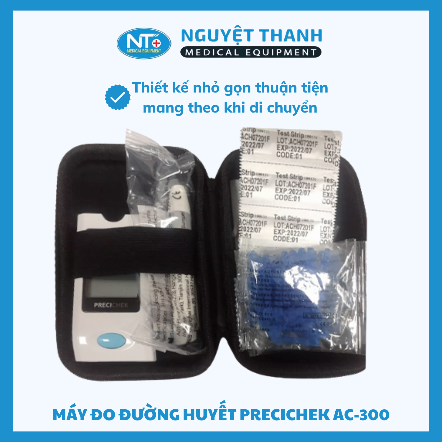🔸 Chỉ sử dụng que thử và kim lấy máu chính hãng, tương thích với máy Precichek AC-300.