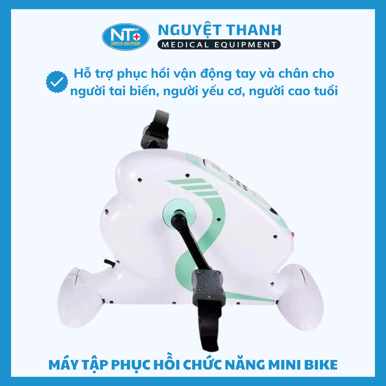 Máy tập phục hồi chức năng Mini Bike là thiết bị hỗ trợ tập luyện chuyên dụng dành cho người cao tuổi, bệnh nhân sau tai biến hoặc người cần cải thiện khả năng vận động tay chân. Với công nghệ vận động tự động thông minh, máy giúp kích thích tuần hoàn máu và duy trì sự dẻo dai của cơ khớp ngay tại nhà. Sản phẩm này hiện đang được Thiết Bị Y Tế Nguyệt Thanh Cần Thơ phân phối trên toàn quốc.