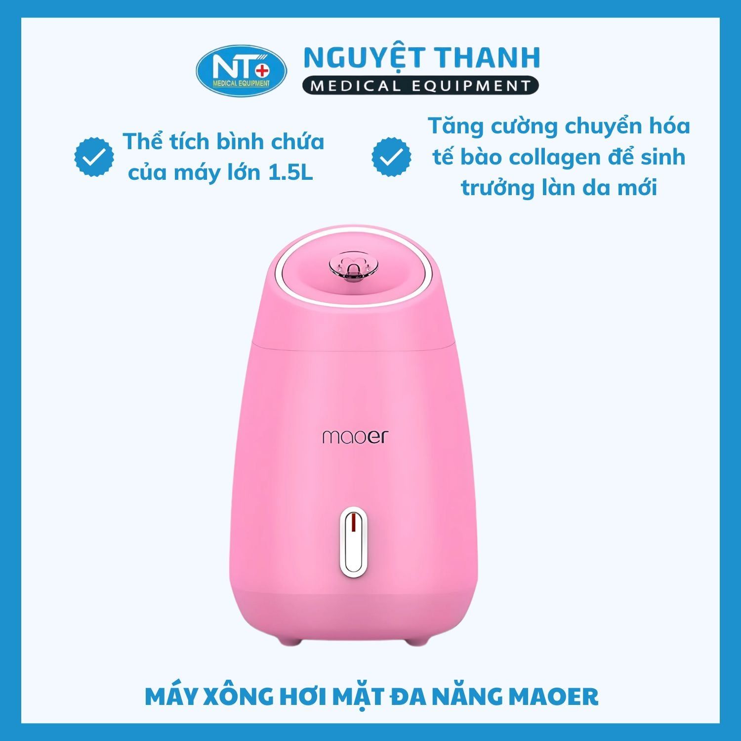 Máy xông hơi mặt Maoer là giải pháp chăm sóc da mặt chuyên sâu ngay tại nhà, sử dụng công nghệ tạo sương li ti giúp hơi nước ion âm thẩm thấu nhanh và sâu vào lỗ chân lông, loại bỏ bụi bẩn, bã nhờn, và tạp chất hiệu quả. Sản phẩm được làm từ nhựa ABS cao cấp, bền bỉ và an toàn tuyệt đối cho người sử dụng, đồng thời có thể kết hợp cùng các loại tinh dầu hay hoa quả yêu thích để tăng cường hiệu quả thư giãn. Sản phẩm này hiện đang được Thiết Bị Y Tế Nguyệt Thanh Cần Thơ phân phối trên toàn quốc.