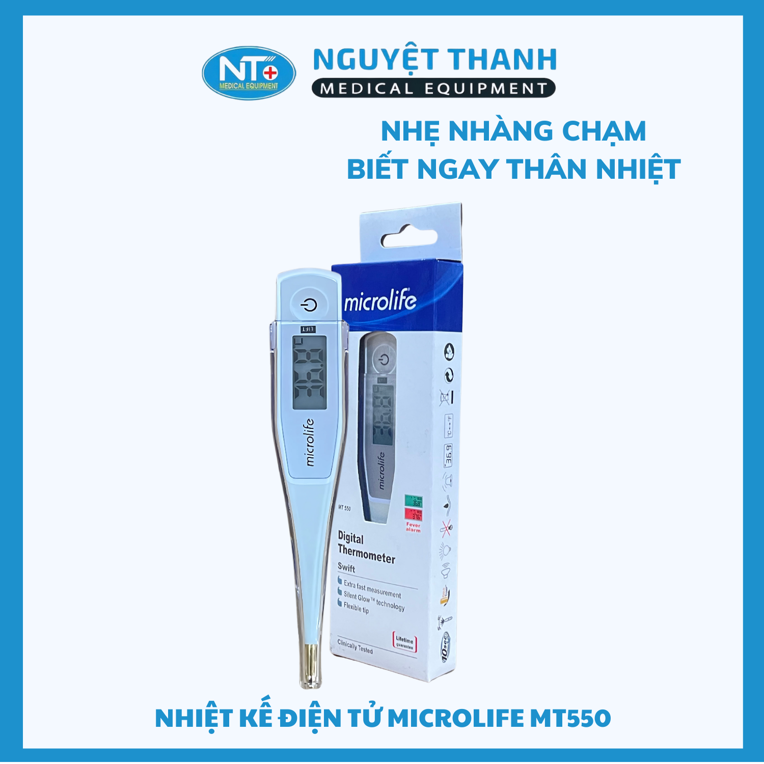🔸Thiết Bị Y Tế Nguyệt Thanh Cần Thơ là nhà phân phối chính hãng NHIỆT KẾ ĐIỆN TỬ MICROLIFE MT550 trên toàn quốc. Chúng tôi cam kết mang đến sản phẩm chất lượng, dịch vụ tận tâm và giao hàng nhanh chóng đến tận tay khách hàng.
