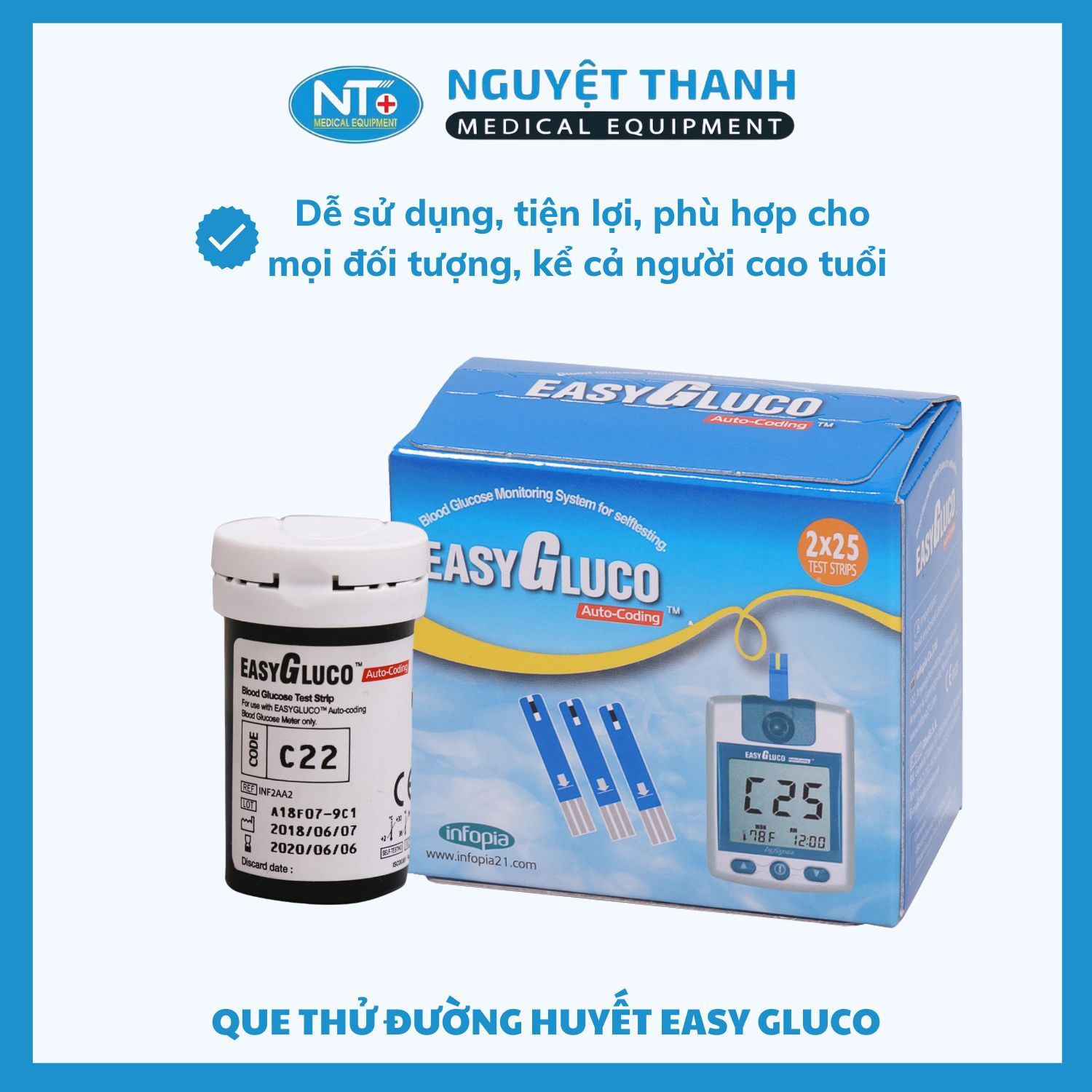🔸Thiết Bị Y Tế Nguyệt Thanh Cần Thơ là nhà phân phối chính hãng QUE THỬ ĐƯỜNG HUYẾT EASYGLUCO AUTO-CODING™ trên toàn quốc. Chúng tôi cam kết mang đến sản phẩm chất lượng, dịch vụ tận tâm và giao hàng nhanh chóng đến tận tay khách hàng. 🔸Quí khách có thể mua sản phẩm QUE THỬ ĐƯỜNG HUYẾT EASYGLUCO AUTO-CODING™ bằng hình thức trực tuyến trên Website, ZaloOA, Fanpage hoặc tại các cửa hàng bán lẻ trong hệ thống của Thiết Bị Y Tế Nguyệt Thanh Cần Thơ.