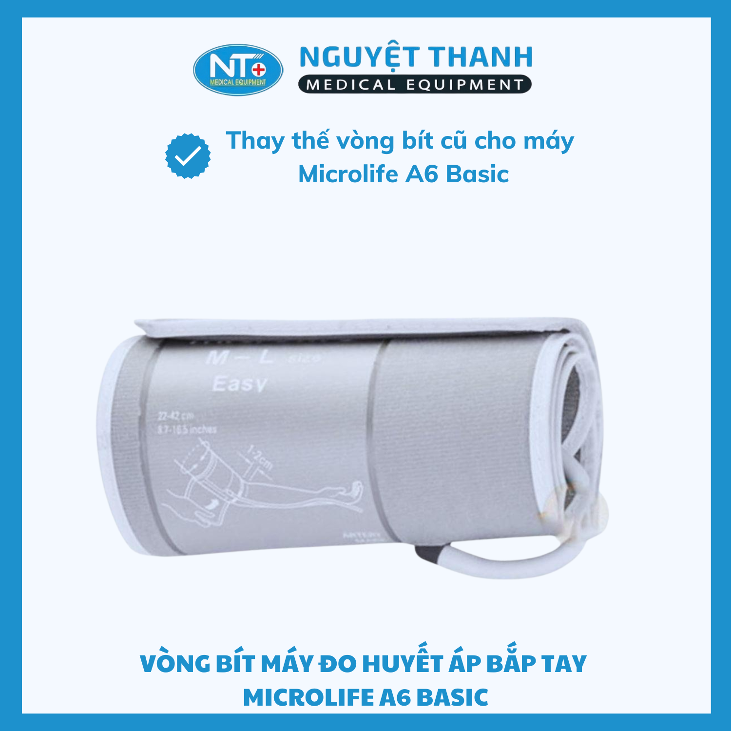 Nếu bạn đang sử dụng máy đo huyết áp Microlife A6 Basic hoặc Microlife A5 NFC nhưng vòng bít đi kèm đã cũ, rách hoặc cho kết quả đo không còn chính xác, thì Vòng bít Microlife A6 Basic chính hãng là lựa chọn thay thế hoàn hảo. Sản phẩm được Thiết Bị Y Tế Nguyệt Thanh phân phối trên toàn quốc, đảm bảo chất lượng – độ bền – giá tốt nhất thị trường.